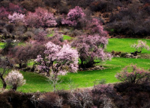 ??? 林芝人稱西藏江南,冰川映襯著森林,碧湖倒映著雪山,森林覆蓋率為46.1%,為中國第三大林區(qū)。沿著318國道從川藏北線走進西藏林芝,處處春意盎然,步步暗香襲人。這里的春天時而大雪紛飛,寒風(fēng)刺骨;忽又艷陽高照,滿目青翠。當然最值得一看的還是林芝的原始森林景觀,魯朗林海終年蒼翠,泉水潺潺,草坪上成千上萬種野花盛開,是拍照的好地方。而頗具林區(qū)特色的木籬笆、木板屋、木頭橋及農(nóng)牧民的村寨星羅棋布,勾畫出美麗的山居圖,意境不凡。而波密古鄉(xiāng)一帶還能看到獨有的春季雪山田園風(fēng)光。