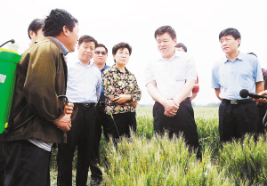 ????????????????????????????????? ?5月15日上午,徐光等市領導在西華縣了解小麥生長情況。