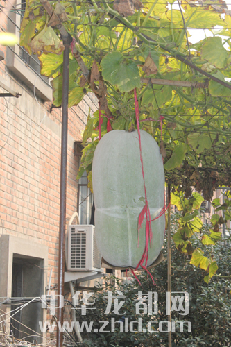 ????不巧的是,記者采訪時(shí)王先生不在家。而他的幾位鄰居對(duì)王先生的勤勞、細(xì)心贊嘆有加。據(jù)介紹,王先生居住在家屬院門口第一家,也許確實(shí)受地理位置影響,特別注意自家的清潔和綠化,以令家屬院“門面”光鮮。不過,真實(shí)原因還是王先生及其家人勤勞、細(xì)心,在儲(chǔ)藏室周邊種植了物美價(jià)廉而且綠葉周期長(zhǎng)的小葉女貞和銀杏樹,盡管如今不少樹木都落葉了,但這里依然是“春”色滿園。最吸引人的是王先生在房頂不足10平方米的地方砌了兩個(gè)菜畦,里面種植有香菜、豆角、葡萄、冬瓜、大蔥等。豆角、葡萄已經(jīng)落葉,而冬瓜、大蔥長(zhǎng)勢(shì)很好,特別是冬瓜架上結(jié)了一個(gè)30多斤重的大冬瓜,看上去特別喜人。