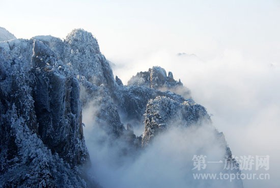 ????看點一:高山飛雪,白色世界。雪花輕盈多情在山峰溝壑間飛舞,把黃山妝扮成了白雪皚皚的世界,白雪與蒼翠的黃山奇松、形態(tài)各異的怪石、險峻的山峰、靈動的云海等景觀巧妙而完美的結(jié)合在一起,交相輝映,風情萬鐘,美不勝收。