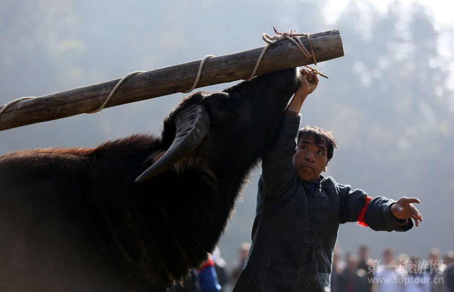 ????祭師在祭尤節(jié)祭祀儀式上準備宰殺作為祭品的水牛