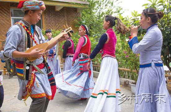 ????說著,郁伍林和婭珍為大家即興演唱了一首山歌。歌聲悠揚婉轉(zhuǎn),雖然聽不懂歌詞,但我們發(fā)現(xiàn)每句后面都跟著一個“哦得得”,一問之下才知道,這首歌的名字就叫“哦得得”,是怒族青年男女表達(dá)愛意的情歌。接下來,郁伍林還彈起了四弦琵琶“達(dá)比亞”,并吹了一曲怒族口弦“幾味”,前來幫忙的鄉(xiāng)親們和著節(jié)拍,在院子里載歌載舞,好不熱鬧。