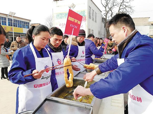 為了讓更多的人利用炸油條走上致富路,鄧城鎮(zhèn)從2012年開始,每年定期舉辦炸油條大賽,或者是技能培訓(xùn),請到一些炸油條的大師或者面點專家,免費提供技能培訓(xùn),給想學(xué)炸油條的人搭建一個平臺。這個活動也成了當(dāng)?shù)刈顬槭⒋蟮拿朗彻?jié)。目前,炸油條大賽已經(jīng)舉辦了6屆,參加的人數(shù)不斷增加,比賽的代表隊從剛開始的十幾個增加到30個。