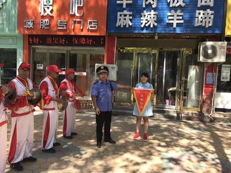 為鞏固創(chuàng)衛(wèi)成果,提高城市精細(xì)化管理水平,川匯區(qū)持續(xù)開展“紅黑旗”評選活動(dòng)。7月22日,在陣陣鑼鼓聲中,該區(qū)城管人員又為6家紅旗商戶、6家黑旗商戶分別懸掛紅黑旗。