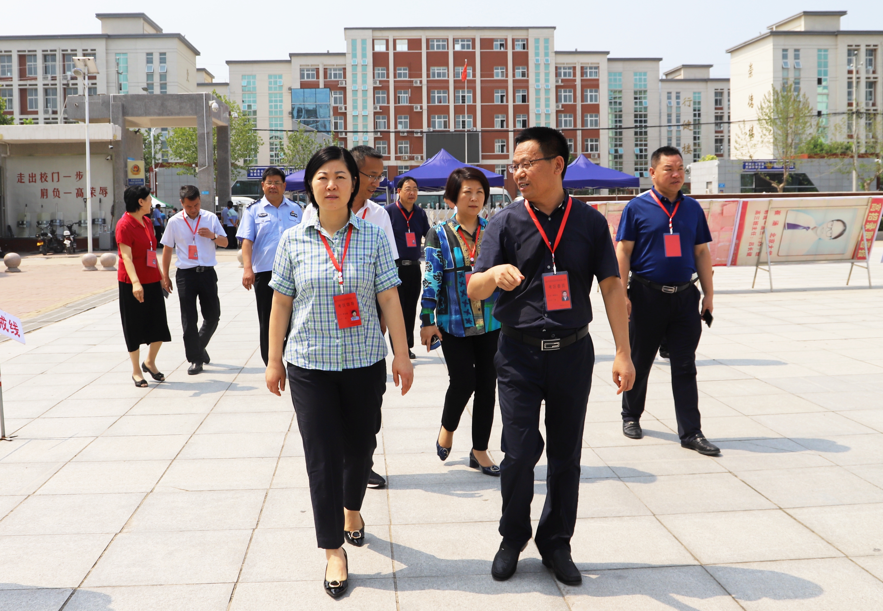 隨后,羅文閣一行來(lái)到鄲城一高考點(diǎn),詳細(xì)詢問(wèn)考務(wù)組織、考前準(zhǔn)備、視頻監(jiān)控設(shè)備、考卷保密措施等情況,實(shí)地查看了解考場(chǎng)周邊環(huán)境、疫情防控、交通保障、志愿服務(wù)等各項(xiàng)工作落實(shí)情況,對(duì)大家的辛勤付出表示衷心感謝和親切慰問(wèn),叮囑大家做好防疫、消夏工作,以健康身體投入工作,并就進(jìn)一步扎實(shí)做好高考各項(xiàng)工作提出具體要求。