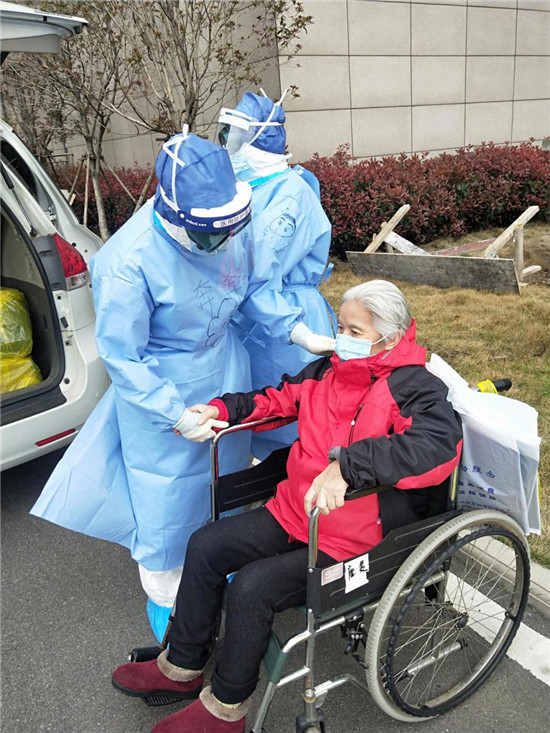 今年74歲的李秀紅,不僅感染新冠肺炎,而且罹患老年癡呆,生活需要時(shí)時(shí)照顧,而且剛?cè)朐簳r(shí),對(duì)陌生環(huán)境的恐懼造成她心情壓抑,天天不說話,時(shí)不時(shí)落淚。為了讓老人放下心理包袱,胡奔奔在進(jìn)行哄喂吃飯、服藥等正常護(hù)理之余,經(jīng)常陪老人聊天、唱歌,后來老人情緒明顯好轉(zhuǎn),還主動(dòng)與胡奔奔一起扭起了舞蹈。后來,老人康復(fù)出院時(shí),雖然無言 卻一直緊緊抓著胡奔奔的手久久不愿放開。胡奔奔說,那一刻,她落淚了,但心里確實(shí)說不出的高興。