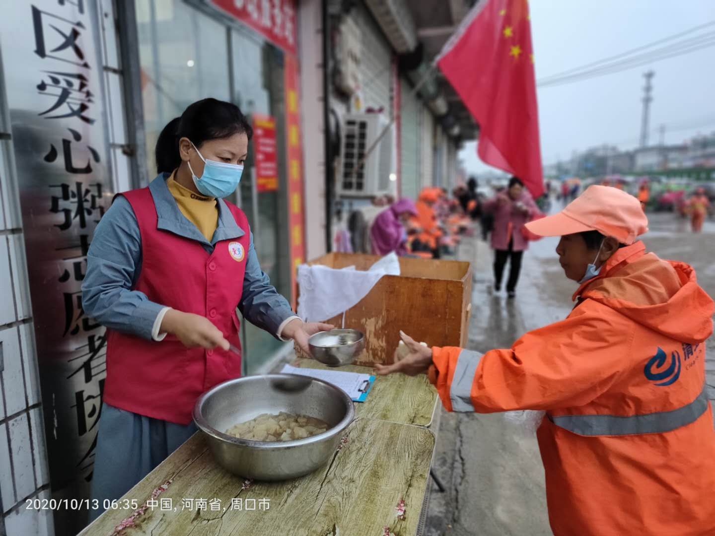 39歲的李明麗便是淮陽(yáng)免費(fèi)愛(ài)心粥屋的發(fā)起人。之前,李明麗常年在鄭州打工,一個(gè)偶然的機(jī)會(huì),李明麗了解到愛(ài)心粥屋是專(zhuān)門(mén)為環(huán)衛(wèi)工人、孤寡老人等弱勢(shì)群體長(zhǎng)期提供免費(fèi)早餐的公益平臺(tái),便加入愛(ài)心粥屋做志愿者,做飯、理財(cái)、學(xué)習(xí)管理制度,一做就是3年。2016年夏,為了自己熱愛(ài)的公益事業(yè),李明麗毅然決然辭去工作,帶著孩子回到老家淮陽(yáng)區(qū)開(kāi)辦愛(ài)心粥屋。為給受助者提供良好的服務(wù),李明麗每天想著飯菜怎么做好吃,變著花樣讓就餐的叔叔阿姨吃到可口暖胃的飯菜,李明麗還積極學(xué)習(xí)黨和國(guó)家政策,學(xué)習(xí)志愿服務(wù)本領(lǐng),帶動(dòng)引領(lǐng)志愿者和就餐者引領(lǐng)社會(huì)文明,因工作積極認(rèn)真,李明麗成為淮陽(yáng)區(qū)免費(fèi)愛(ài)心粥屋負(fù)責(zé)人,并光榮加入黨組織。
