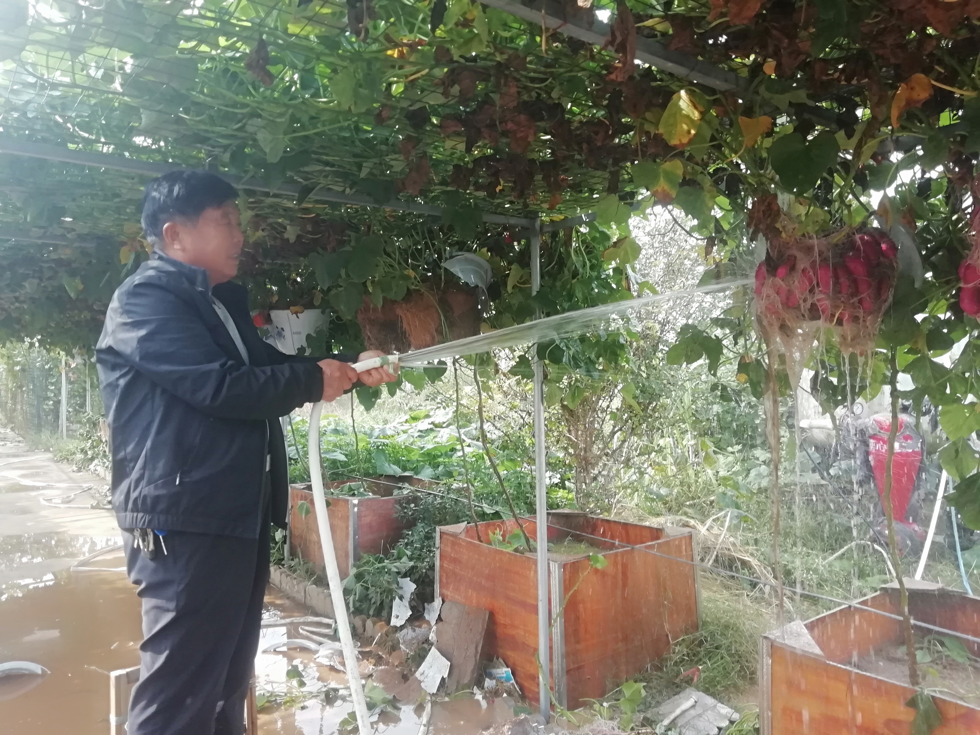 10月19日,西華縣農(nóng)業(yè)科學(xué)研究所“空中結(jié)薯”試驗(yàn)種植取得圓滿成功。走進(jìn)該縣農(nóng)業(yè)科學(xué)研究所“空中結(jié)薯”試驗(yàn)種植示范大棚,一株株大型“紅薯樹”的藤蔓環(huán)繞棚架蜿蜒而上覆蓋棚頂,一串串紅薯緊抱成團(tuán)、高懸在茂密的薯葉之中,薯藤閃現(xiàn)的幾片黃葉標(biāo)志著紅薯豐收在即。