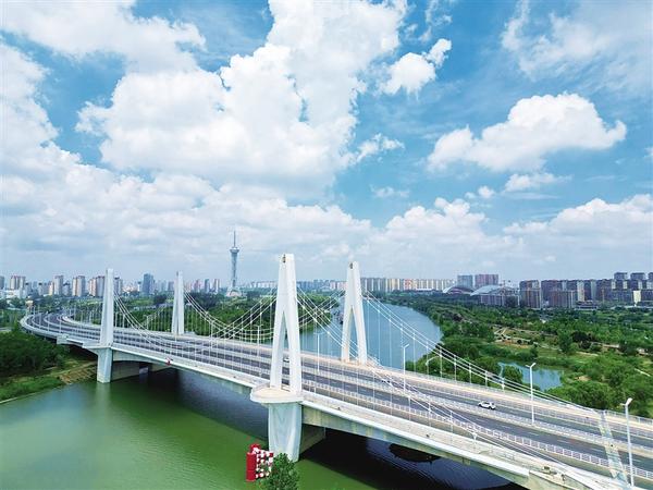 7月25日,藍(lán)天白云映襯下,周口市七一路跨沙潁河大橋以“揚(yáng)帆出海”的獨(dú)特造型,生動(dòng)展現(xiàn)了這座中原港城的雄心。作為河南“豫貨出?!钡臉蝾^堡,周口正肩負(fù)起港口型國家物流樞紐承載城市的重任,推動(dòng)“經(jīng)濟(jì)通道”邁向“通道經(jīng)濟(jì)”,實(shí)現(xiàn)高質(zhì)量發(fā)展。