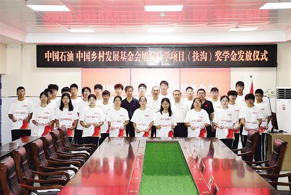 8月12日,中國石油 中國鄉(xiāng)村發(fā)展基金會旭航助學(xué)項目獎學(xué)金發(fā)放儀式在扶溝縣高級中學(xué)舉行?;顒蝇F(xiàn)場,30名品學(xué)兼優(yōu)的學(xué)子共獲15萬元愛心獎學(xué)金。旭航助學(xué)項目是中國石油與中國鄉(xiāng)村發(fā)展基金會攜手發(fā)起的專注于教育領(lǐng)域的公益項目,旨在為家庭困難的高中生提供助學(xué)金和獎學(xué)金,幫助他們完成學(xué)業(yè),實現(xiàn)求學(xué)夢想。圖為活動現(xiàn)場。記者 金月全