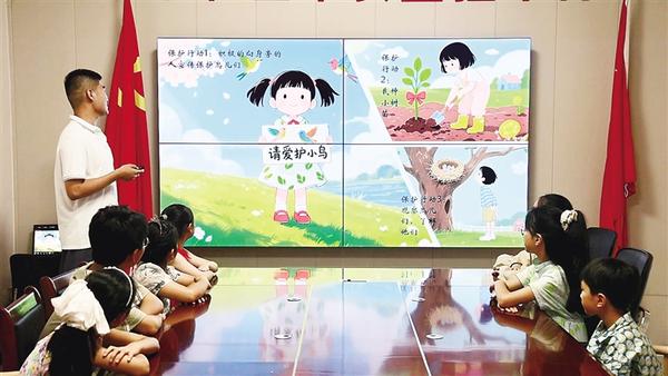 返鄉(xiāng)大學生志愿者魏柏宇向孩子們介紹珍稀鳥類的外形特征、生活習性與生存現(xiàn)狀。近日,鄲城縣自然資源局組織工作人員、返鄉(xiāng)大學生志愿者到該縣新城街道秀水社區(qū)開辦科普課堂,旨在通過生動講解與互動實踐,深化社區(qū)青少年對生態(tài)保護的認識。記者 徐松 通訊員 陳吳陸 攝