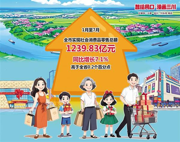 1月至7月,全市實現社會消費品零售總額1239.83億元,同比增長7.1%,高于全省0.2個百分點;市場活力足,通訊器材、家電、化妝品等升級類商品銷售表現亮眼,分別增長56.8%、33.3%、26.6%。 記者 付永奇 周彥 文/圖