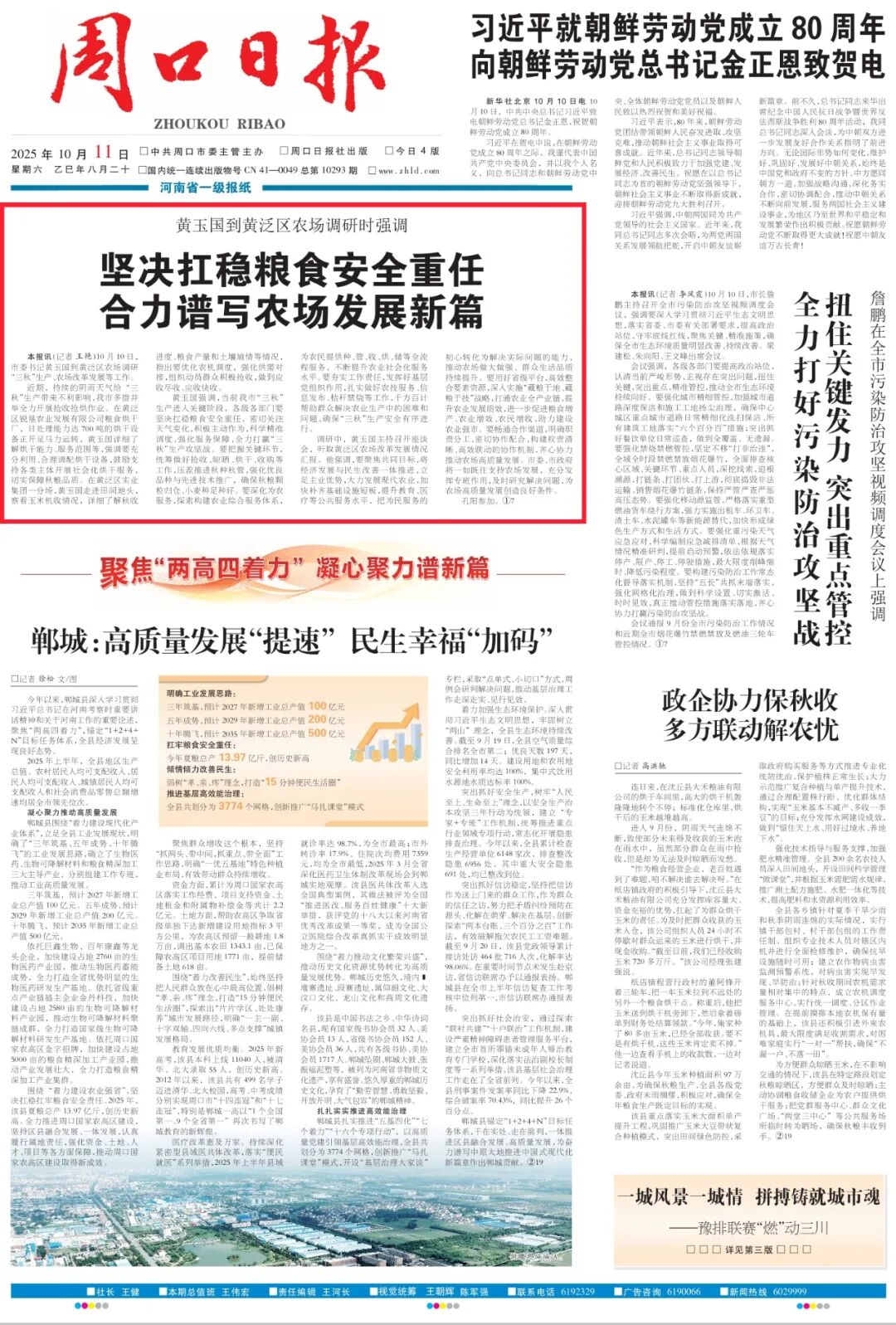 10月10日,市委書記黃玉國到黃泛區(qū)農(nóng)場調(diào)研“三秋”生產(chǎn)、農(nóng)場改革發(fā)展等工作。