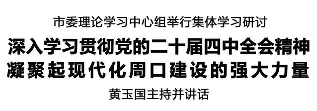 本報(bào)訊 (記者 王艷) 11月8日,市委理論學(xué)習(xí)中心組舉行集體學(xué)習(xí)研討,深入學(xué)習(xí)貫徹黨的二十屆四中全會(huì)精神,示范帶動(dòng)全市各級(jí)黨組織和廣大黨員干部興起學(xué)習(xí)貫徹?zé)岢保燮瓞F(xiàn)代化周口建設(shè)的強(qiáng)大力量。市委書記黃玉國主持并講話。
