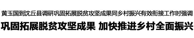本報(bào)訊 (記者 王艷 王晨) 11月18日,市委書記黃玉國(guó)到沈丘縣調(diào)研鞏固拓展脫貧攻堅(jiān)成果同鄉(xiāng)村振興有效銜接工作,強(qiáng)調(diào)要深入學(xué)習(xí)貫徹黨的二十屆四中全會(huì)精神和習(xí)近平總書記在河南考察時(shí)重要講話精神,全面落實(shí)省委和市委部署要求,扛牢責(zé)任、真抓實(shí)干,毫不松懈鞏固拓展脫貧攻堅(jiān)成果,加快推進(jìn)鄉(xiāng)村全面振興,牢牢守住不發(fā)生規(guī)模性返貧致貧底線。