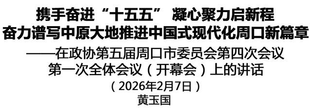 在“十四五”勝利收官、“十五五”開局起步的關鍵時期,政協(xié)第五屆周口市委員會第四次會議隆重開幕了。這是全市人民政治生活中的一件大事,是廣納群言、廣集眾智、共謀發(fā)展的一次盛會。在此,我代表中共周口市委,向大會的召開表示熱烈祝賀,向全體政協(xié)委員和與會同志致以誠摯問候!