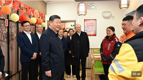 10日上午,習(xí)近平總書記來到北京市西城區(qū)新街口街道父母食堂考察。見到在這里休息的3名快遞小哥,習(xí)近平關(guān)切詢問他們跑快遞多久了、工作累不累、收入怎么樣、春節(jié)回不回家,為他們付出的辛勞和作出的貢獻(xiàn)點(diǎn)贊。習(xí)近平說,你們滿足千家萬戶需求,城市運(yùn)轉(zhuǎn)離不開你們,希望你們都能夠生活得好、工作得好。習(xí)近平強(qiáng)調(diào),各級(jí)黨委和政府一定要關(guān)心新就業(yè)群體,為他們的生活、工作、學(xué)習(xí)提供好服務(wù)。