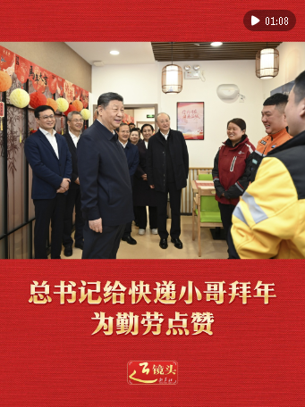 這是總書記又一次于春節(jié)前夕看望快遞小哥。2019年春節(jié)前夕,總書記在北京考察時,就曾給快遞小哥拜年,稱他們?yōu)椤扒趧诘男∶鄯洹薄?/p>