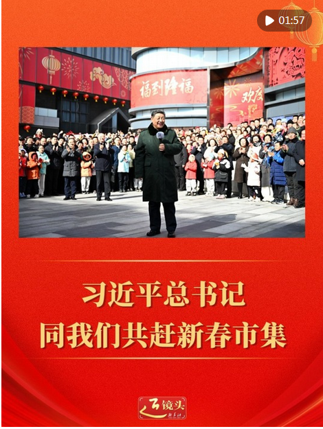 習(xí)近平總書(shū)記同人民群眾共趕市集、共迎新春,是年節(jié)里最溫暖的圖景。總書(shū)記走到百姓中間,送上真摯的新春祝福:“在農(nóng)歷馬年龍馬精神、身體健康、事業(yè)有成、闔家幸福!”