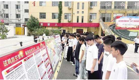 “國(guó)防動(dòng)員九一八警報(bào)試?guó)Q疏散演練,現(xiàn)在開始!”9月15日9時(shí)30分,周口市第十九初級(jí)中學(xué)校園內(nèi),隨著指揮長(zhǎng)的指令下達(dá),“嗚——”的防空警報(bào)聲驟然劃破晴空。