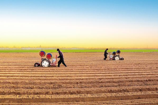 12月3日,扶溝縣韭園鎮(zhèn)農(nóng)民迎著朝陽(yáng)進(jìn)行胡蘿卜播種作業(yè)。該鎮(zhèn)1000畝胡蘿卜種植基地依托衛(wèi)星定位技術(shù)完成土地深翻與起壟,并采用播種、滴灌鋪管、播后鎮(zhèn)壓一體化機(jī)械進(jìn)行播種,相比傳統(tǒng)種植方式,作業(yè)效率顯著提升,播種周期可提前5至8天。
