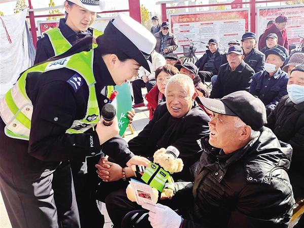 11月28日,民警將“交警小熊”送給一位村民。當日,商水縣公安局交通警察大隊組織民警、輔警,攜手縣豫劇中心走進湯莊鄉(xiāng)西趙橋村,開展“美麗鄉(xiāng)村行”交通安全宣傳活動,通過營造宣傳氛圍,讓群眾自覺遵守法律法規(guī),安全文明出行。