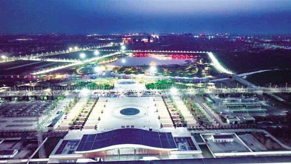 華燈初上,西華高鐵站夜景如畫(huà)。站前廣場(chǎng)布局規(guī)整,彩色鋪裝、圓形圖案兼具美觀與實(shí)用性,優(yōu)化人流集散。