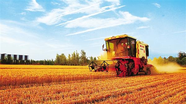 5月22日,農(nóng)機手駕駛收割機在扶溝縣大李莊鄉(xiāng)馮老行政村的一塊麥田里收割小麥。近日,扶溝104萬畝小麥相繼進入成熟收割期。