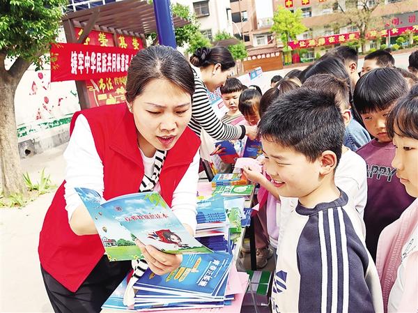 4月9日,志愿者向?qū)W生講解反邪教知識(shí)。當(dāng)天,扶溝縣科協(xié)聯(lián)合縣委統(tǒng)戰(zhàn)部、縣民宗局、縣教體局開(kāi)展“鑄牢中華民族共同體意識(shí)暨民族宗教政策法規(guī)宣傳月”活動(dòng),為回族小學(xué)師生送去科普?qǐng)D書(shū)及宣傳物品2000余件。