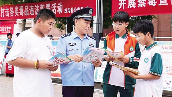 6月26日是第38個(gè)國(guó)際禁毒日,扶溝縣公安局民警向青少年講解毒品的危害。當(dāng)日,我市多地展開(kāi)宣傳和教育活動(dòng),引導(dǎo)人民群眾特別是青少年懂法守法,推動(dòng)“健康人生,綠色無(wú)毒”理念深入人心。