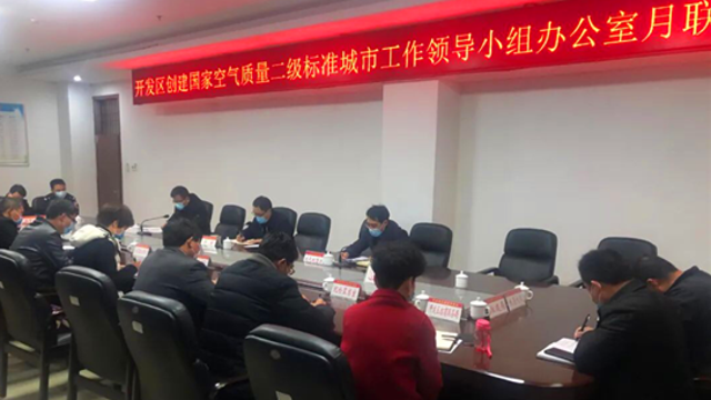 4月1日上午,開(kāi)發(fā)區(qū)管委會(huì)副主任于杰主持召開(kāi)創(chuàng)建國(guó)家空氣質(zhì)量二級(jí)標(biāo)準(zhǔn)城市工作領(lǐng)導(dǎo)小組辦公室月聯(lián)席會(huì)議,分析當(dāng)前形勢(shì),安排重點(diǎn)任務(wù)。