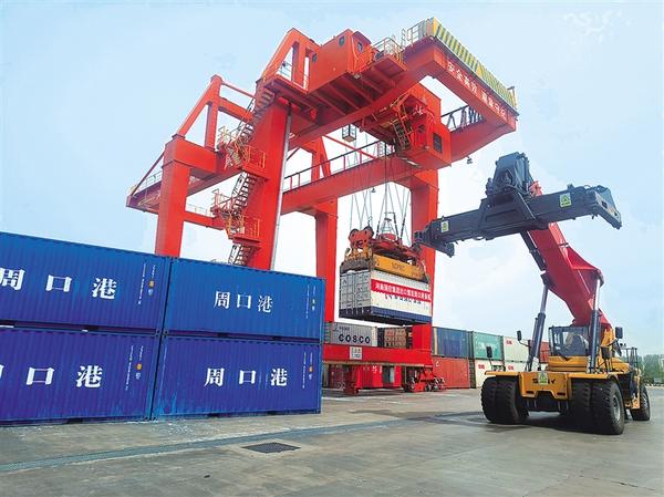 5月17日,“國(guó)控·首航號(hào)”集裝箱貨船從周口中心港范營(yíng)作業(yè)區(qū)起航,將我省生產(chǎn)的無(wú)煙煤運(yùn)往日本。本航班通過(guò)“散改集”開(kāi)創(chuàng)了周口港集裝箱裝煤模式,為煤炭運(yùn)輸方式的創(chuàng)新提供了新思路和新實(shí)踐。